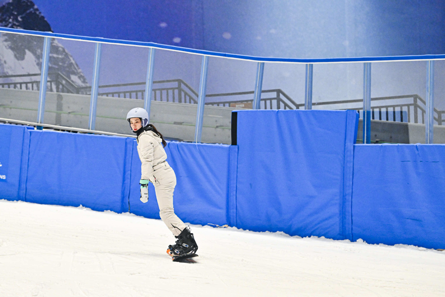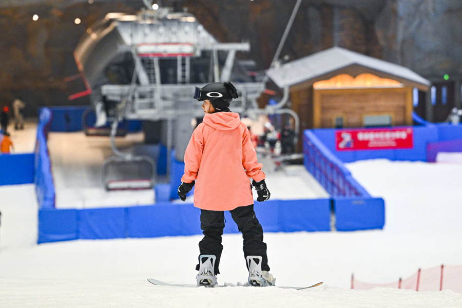 耀雪室内滑雪场内女性体验滑雪运动,专业装备与场景消费勾勒体育消费新图景