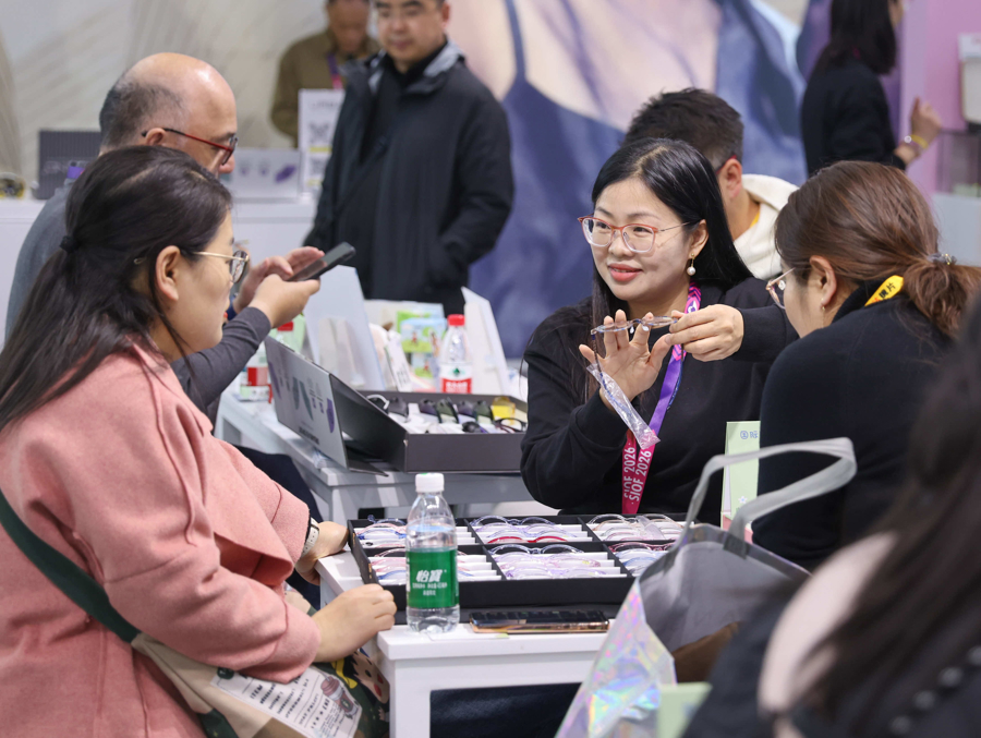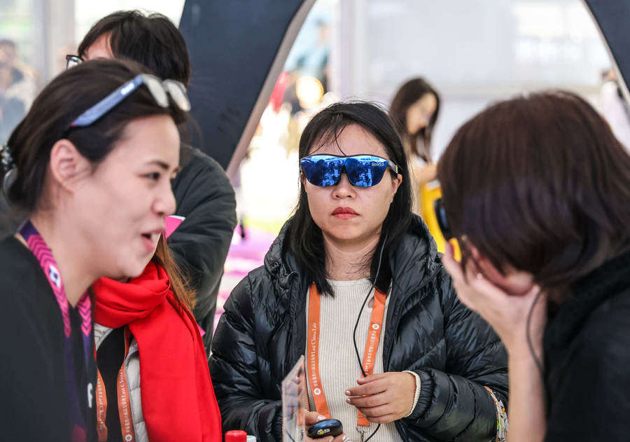 第二十四届中国(上海)国际眼镜业展览会上,智能眼镜展台收获了不少女性客户的青睐