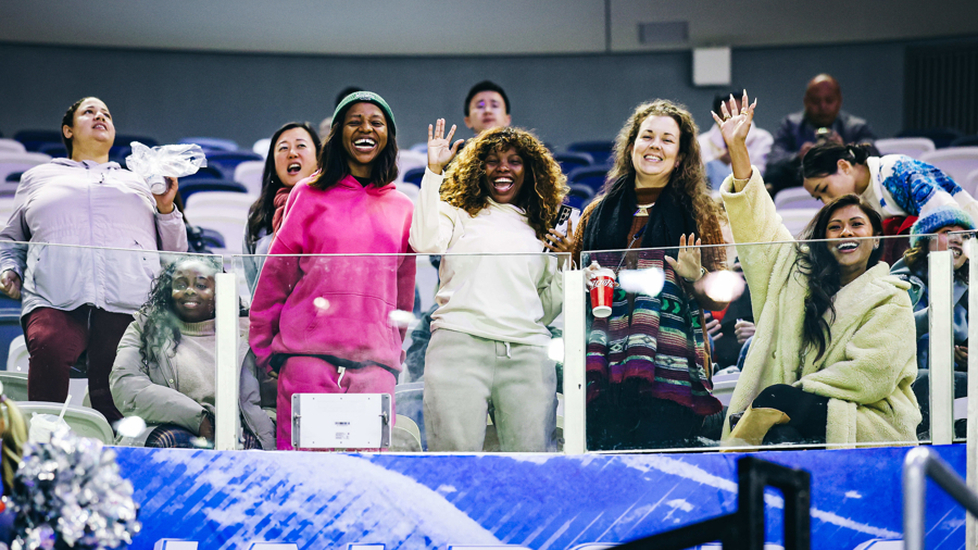 在东方体育中心举行的KHL大陆冰球联赛世界赛上海站的比赛现场,看台上出现了许多女性观众的身影
