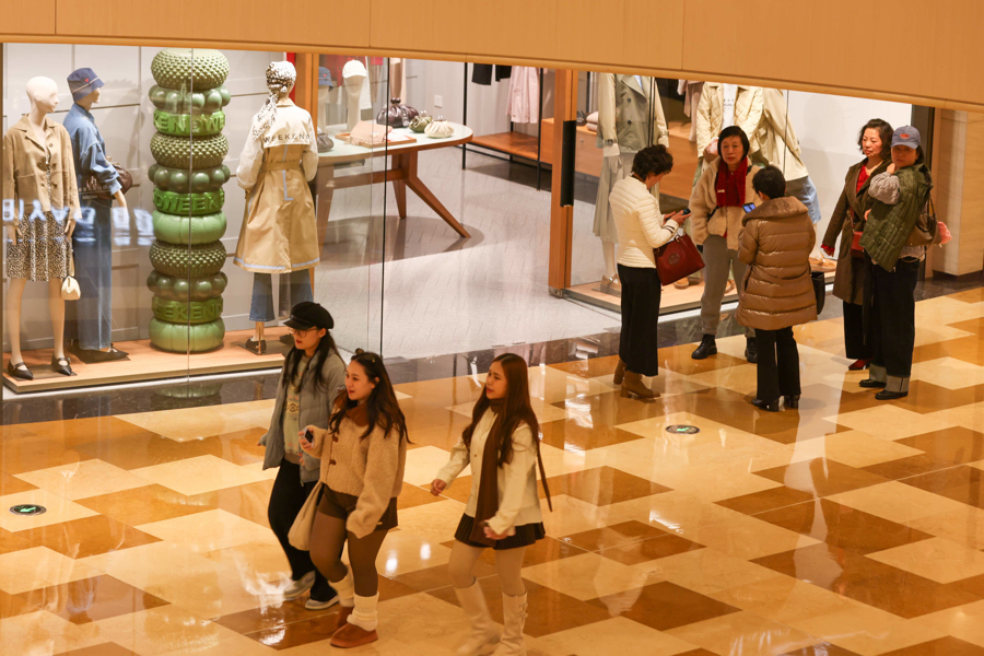在静安的一家商场里,时尚丽人与都市女性路过