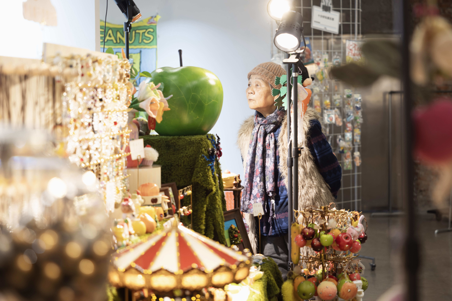 在“女子女子市场”中,一位打扮精致的年长女性漫步市集